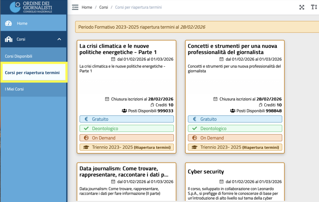 TRIENNIO 2023-2025, DAL 1° AL 28 FEBBRAIO IL RECUPERO CON I CORSI ON DEMAND